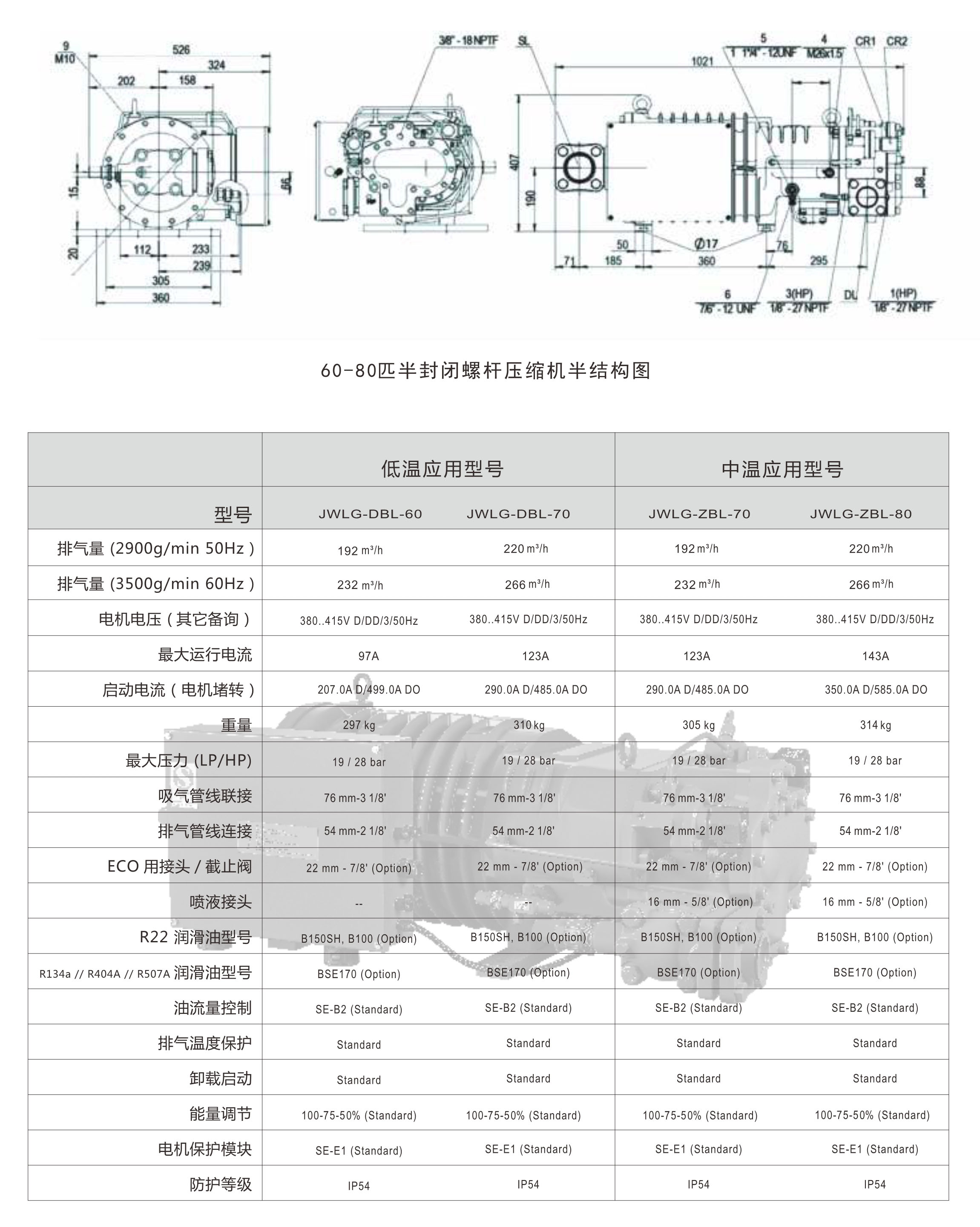 60~80匹中/低溫半封閉螺桿壓縮機(jī)
